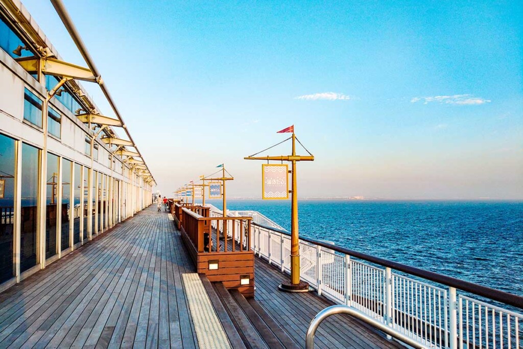 “Parking area” ini menawarkan pemandangan 360 derajat yang luar biasa dengan posisinya yang berada ditengah laut. Anda bisa menyaksikan pesawat yang lepas landas dan mendarat di Bandara Haneda, bahkan Gunung Fuji juga terlihat jelas pada kondisi hari yang cerah.