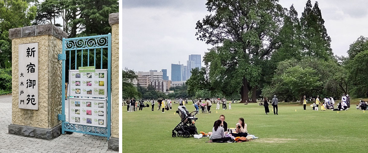 Saya menikmati berjalan-jalan di Shinjuku-Gyoen hingga sekitar pukul 12. Saya benar-benar merasa segar dengan melihat mawar-mawar yang cantik, berjalan di atas rumput empuk, dan merasakan kedamaian di berada antara pepohonan yang rindang.
